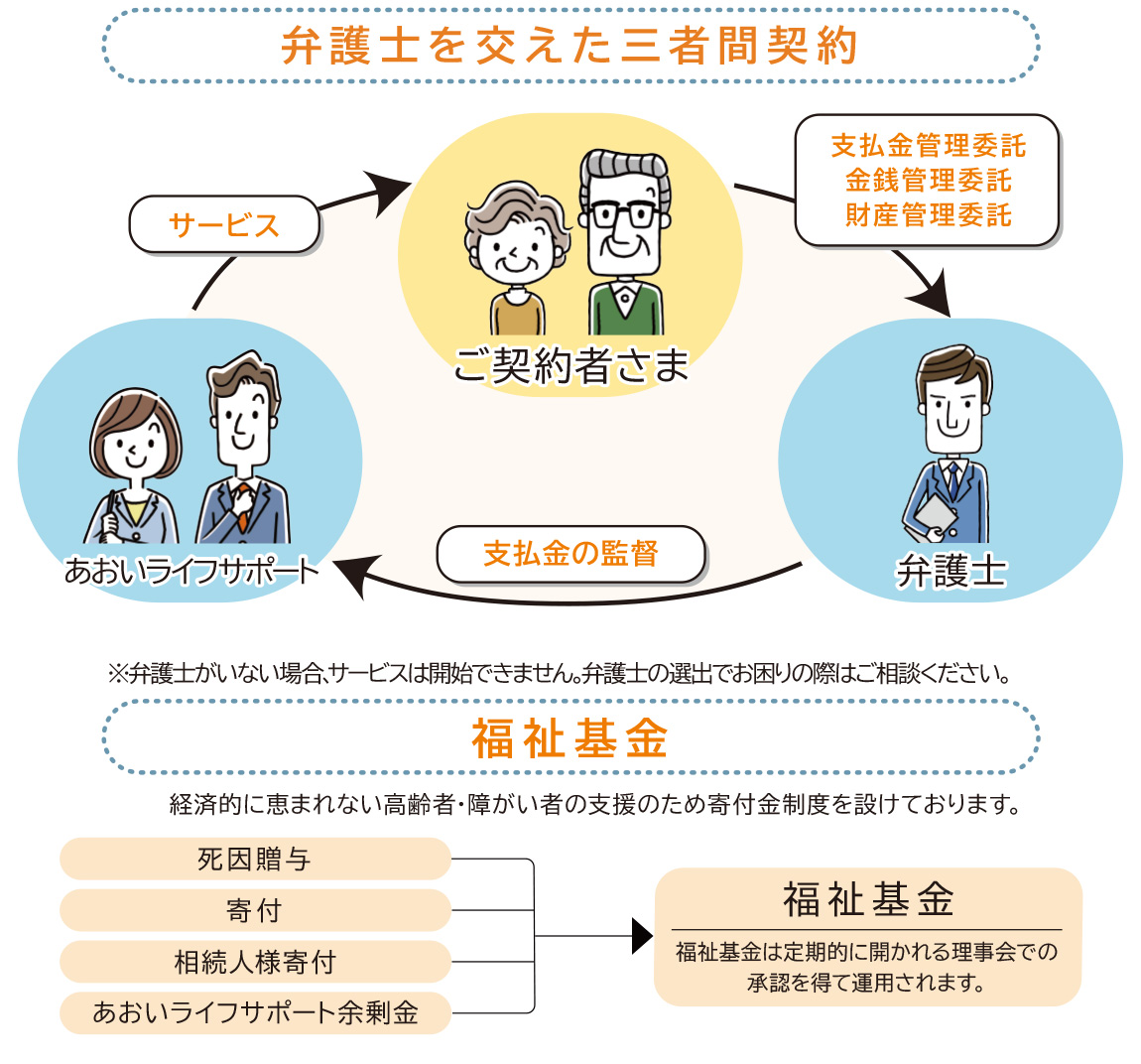 当会では皆様にお支払いいただいたお金を、3か月に1度弁護士に調査・確認していただいております。 サービスの利用実績に基づいて利用分を弁護士に確認していただきます。 また、適切に管理されていることを証明するため、支払金の残高とサービスの利用実績を3か月に1度ご本人に報告しております。