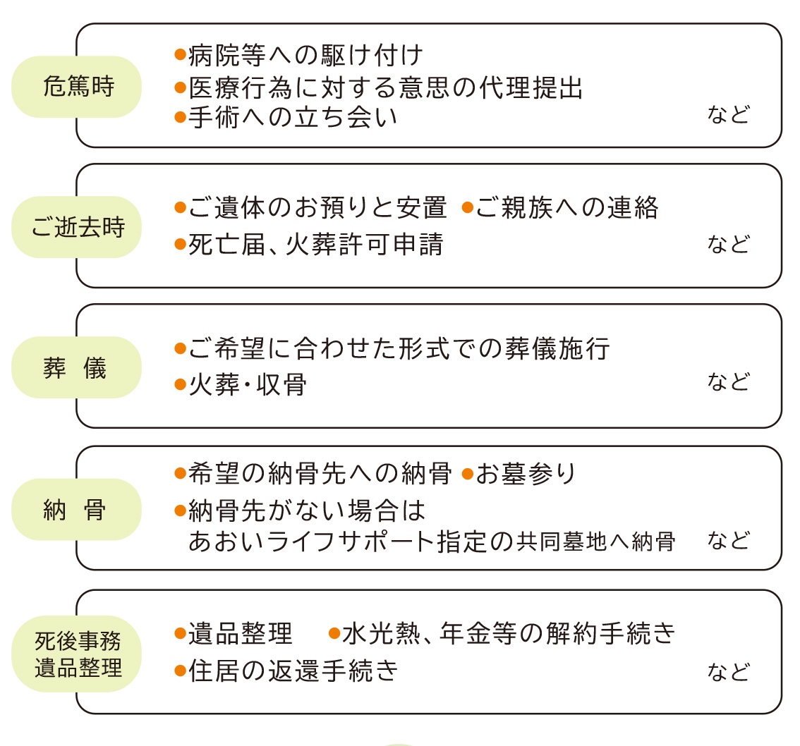 看取りから葬儀・納骨、死後事務まで、ご逝去後に家族が行うべき手続きもフルサポートいたします。